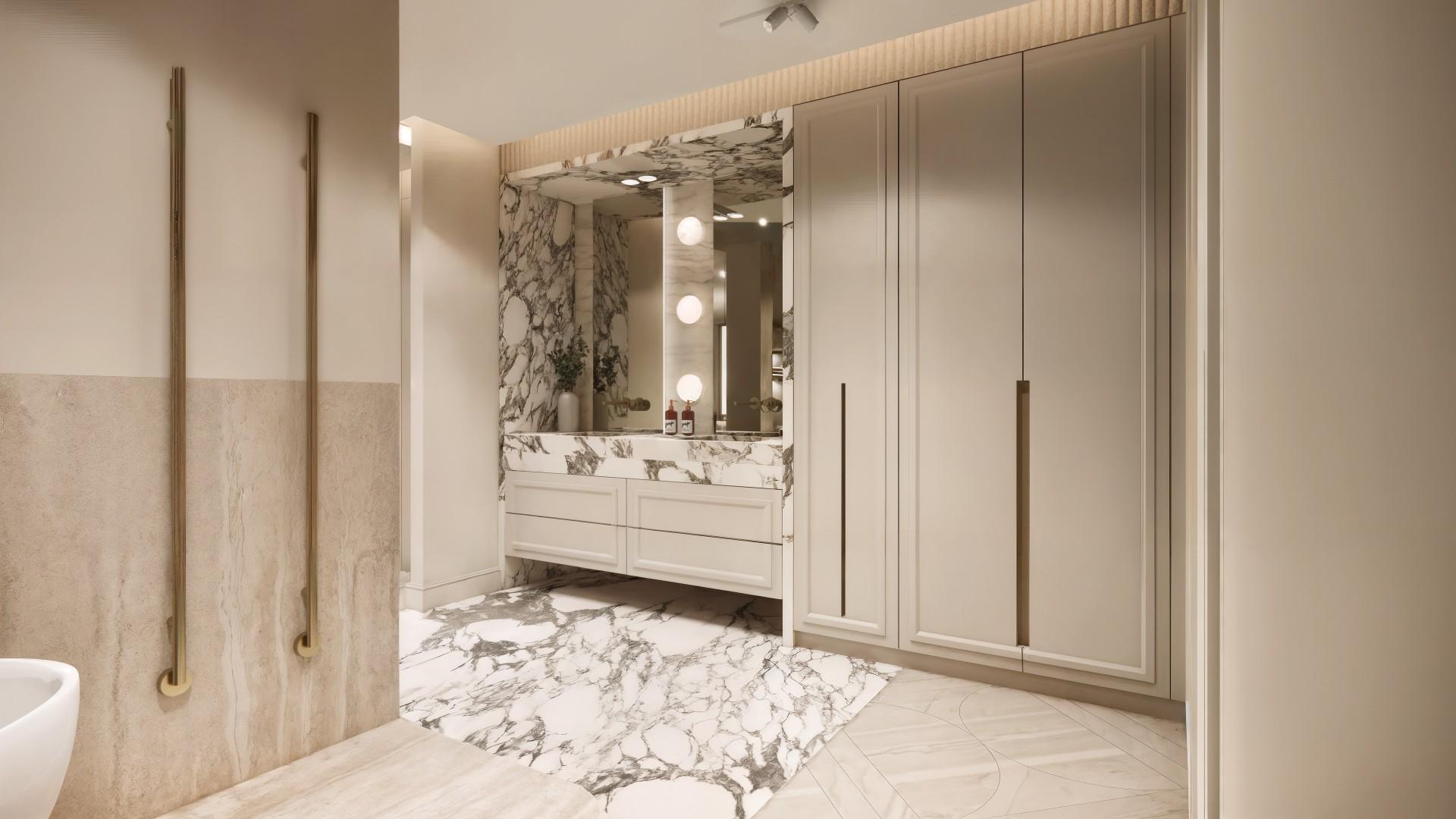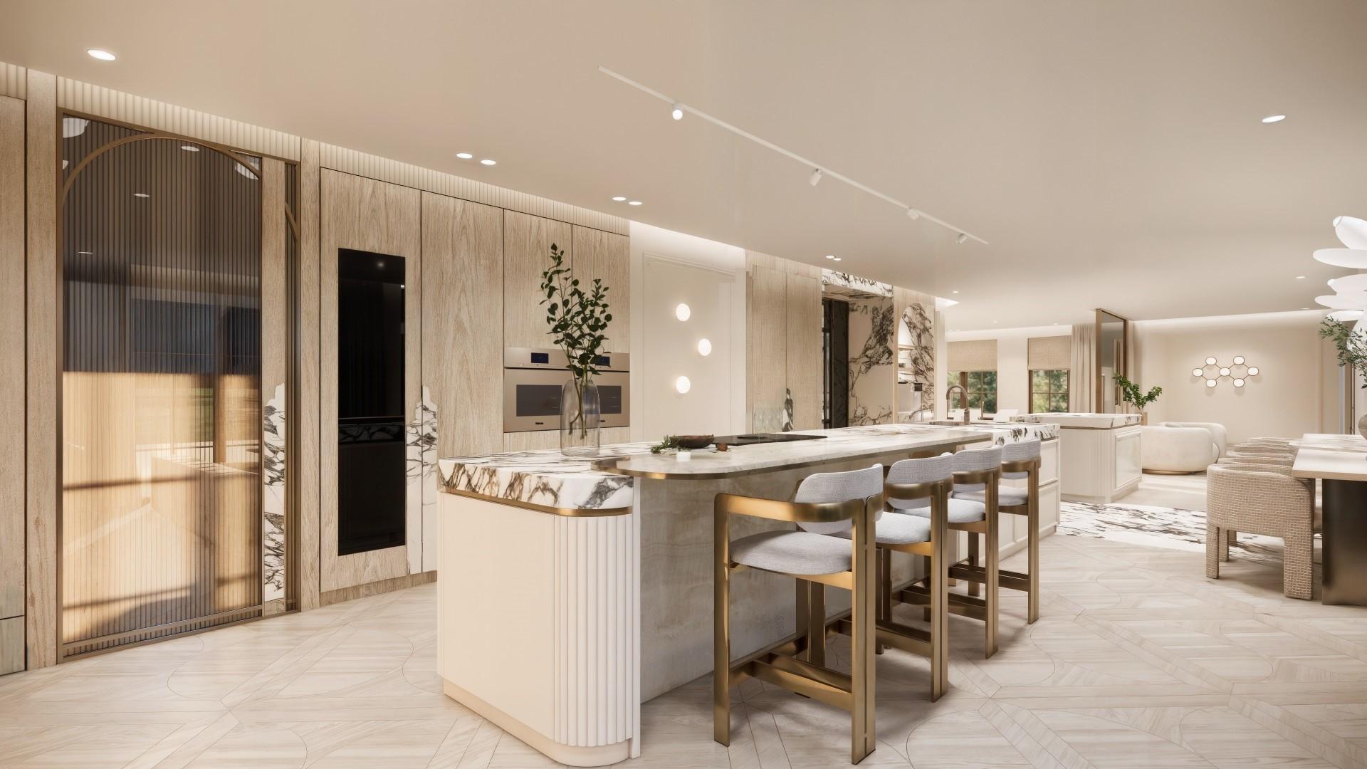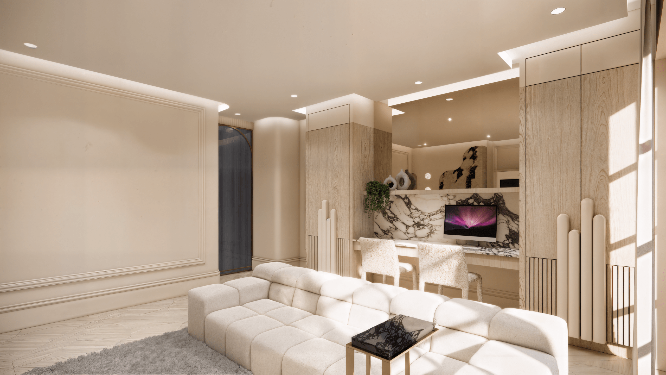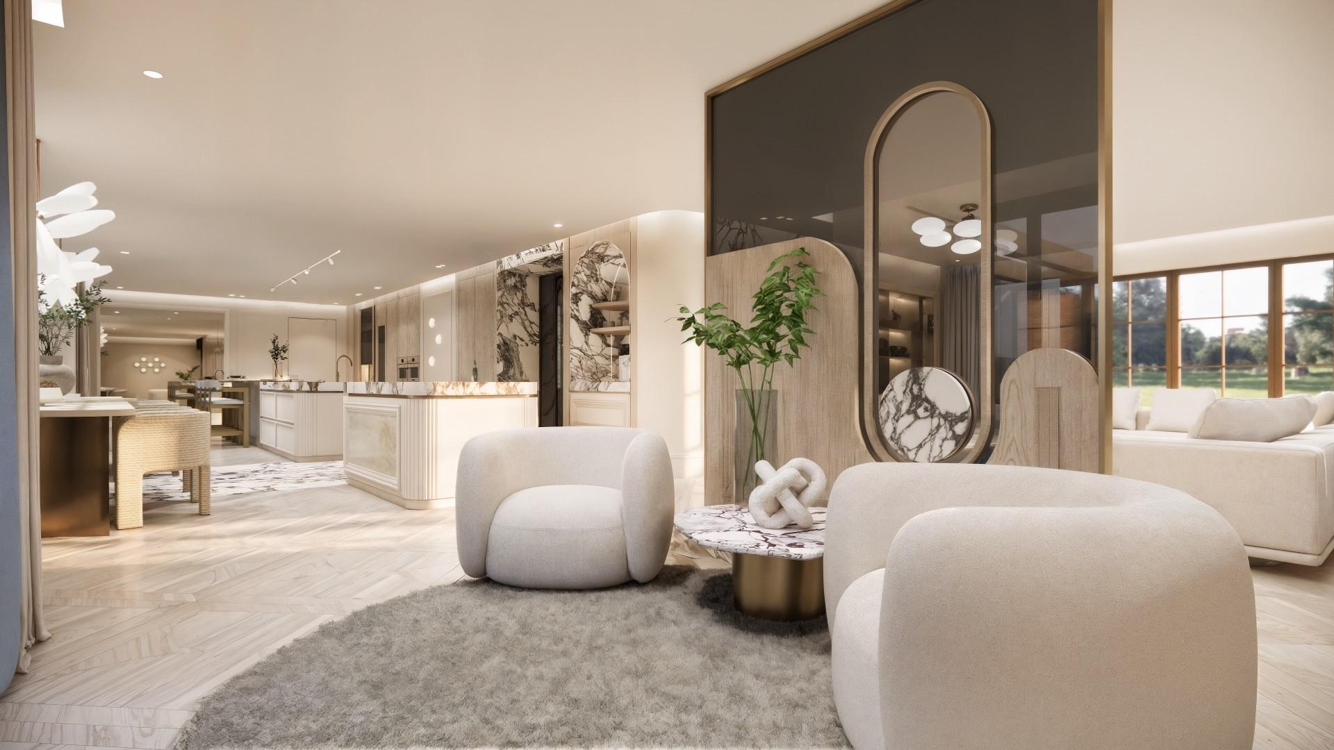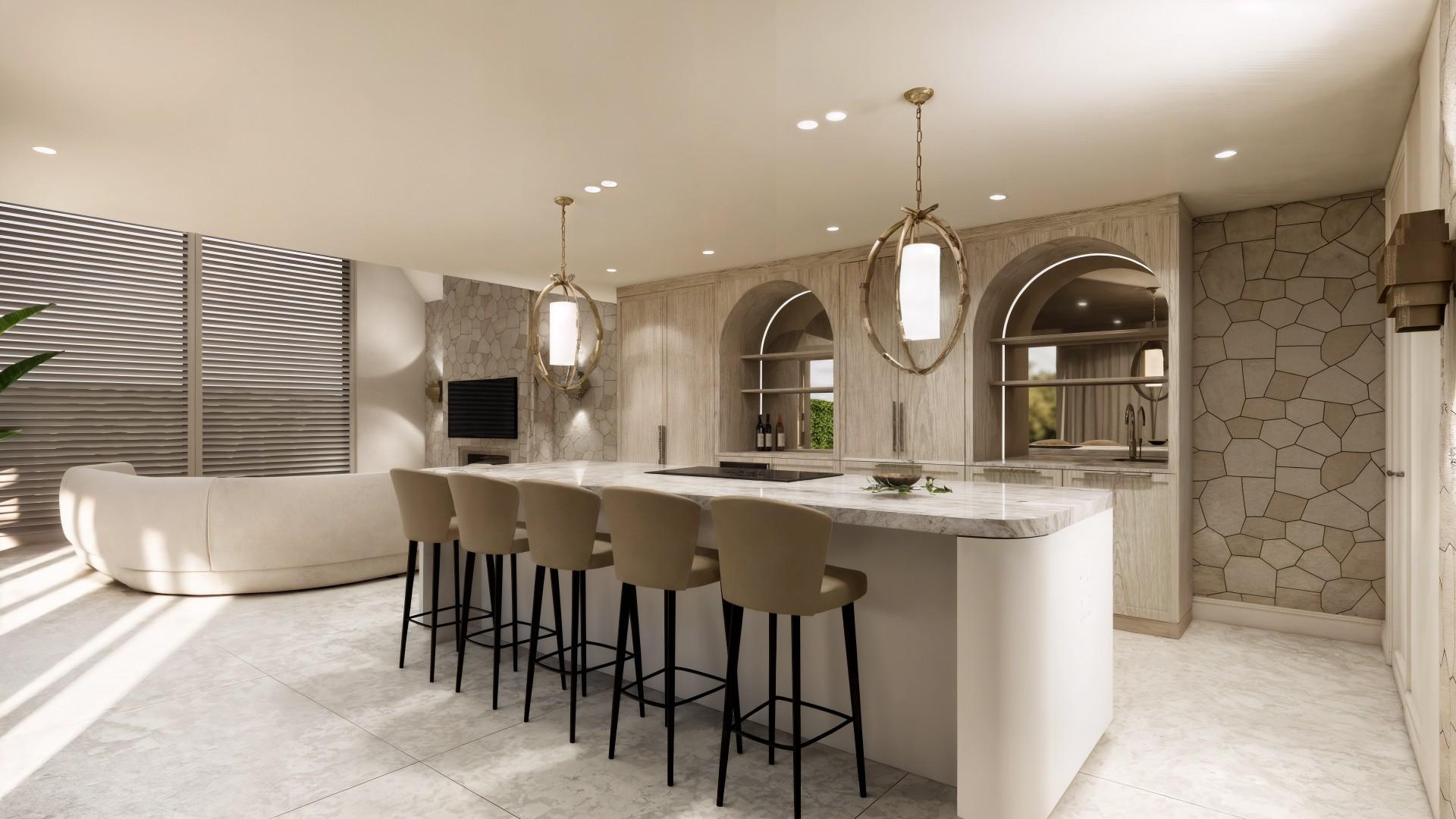 Voor dit project hebben we een uniek ontwerp gecreëerd dat de verfijnde uitstraling van internationale high-end hotels combineert met de warmte van een echt thuis. De balans tussen luxe en huiselijkheid staat centraal, waardoor de ruimte zowel imposant als uitnodigend aanvoelt. Door het gebruik van rijke materialen, lichte kleurtinten en elegant natuursteen ontstaat een serene basis die rust en verfijning uitstraalt. Daarnaast is de woning volledig voorzien van alle gemakken die een groot gezin nodig heeft, van slimme indelingen tot praktische oplossingen zonder concessies te doen aan stijl. Elke keuze — van materiaal tot functionaliteit — draagt bij aan een omgeving die je omarmt en waarin comfort, sfeer en luxe moeiteloos samenkomen.